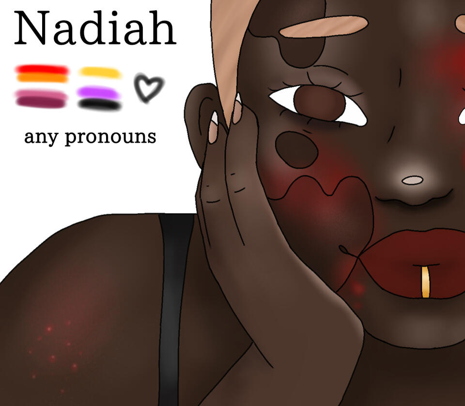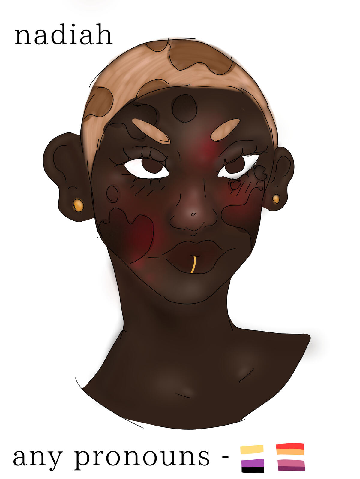 She has rosacea, melasma, chicken skin, and eczema. Nadiah uses wet wrap therapy to help with their eczema.